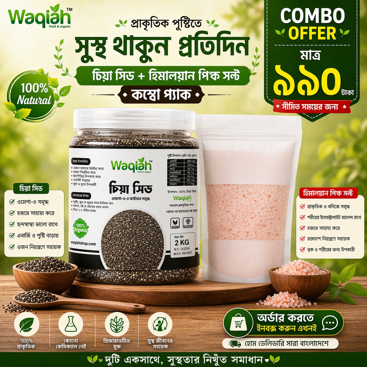 #ComboOffer #HealthyLife #ChiaSeed #PinkSalt #OrganicFood #Waqiah 🌱
